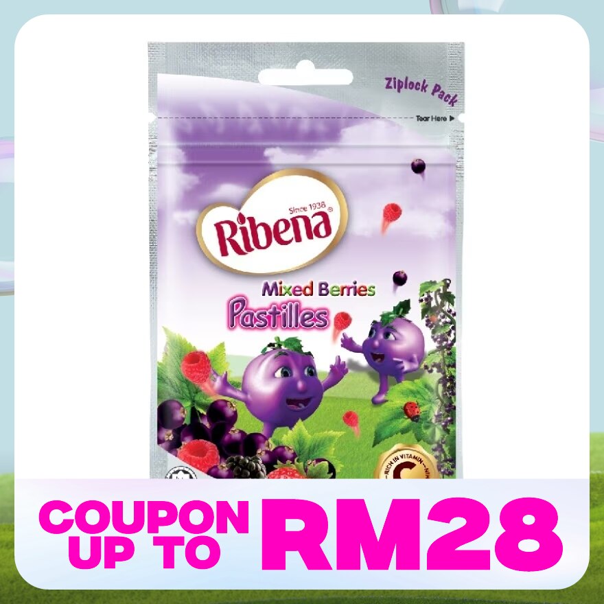 RIBENA Pastilles Mixed Berries is not only a nutritious juice drink but can also be eaten as a healthy snack. The rich in Vitamin C chewable Ribena pastilles come in Ribena Mixed Berries.