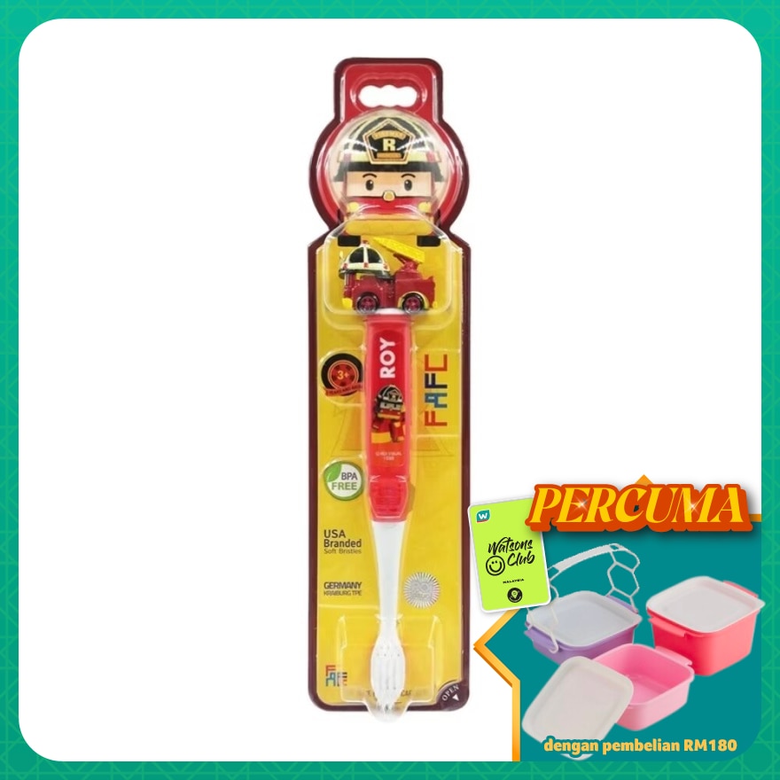 [BRAND] FAFC [NAME] ROBOCAR POLI - ROY FIGURINE KIDS TOOTHBRUSH [PACKING] 1pcs Packing [AGE] 3 Years & Above [CHARACTER] Roy [Feature] 100% Virgin Resin, Ultra Soft Bristles 0.127mm dia, 3D Grip Design, Removable Figurine Collection, Gum Care Toothbrush, Protect Kids Gum