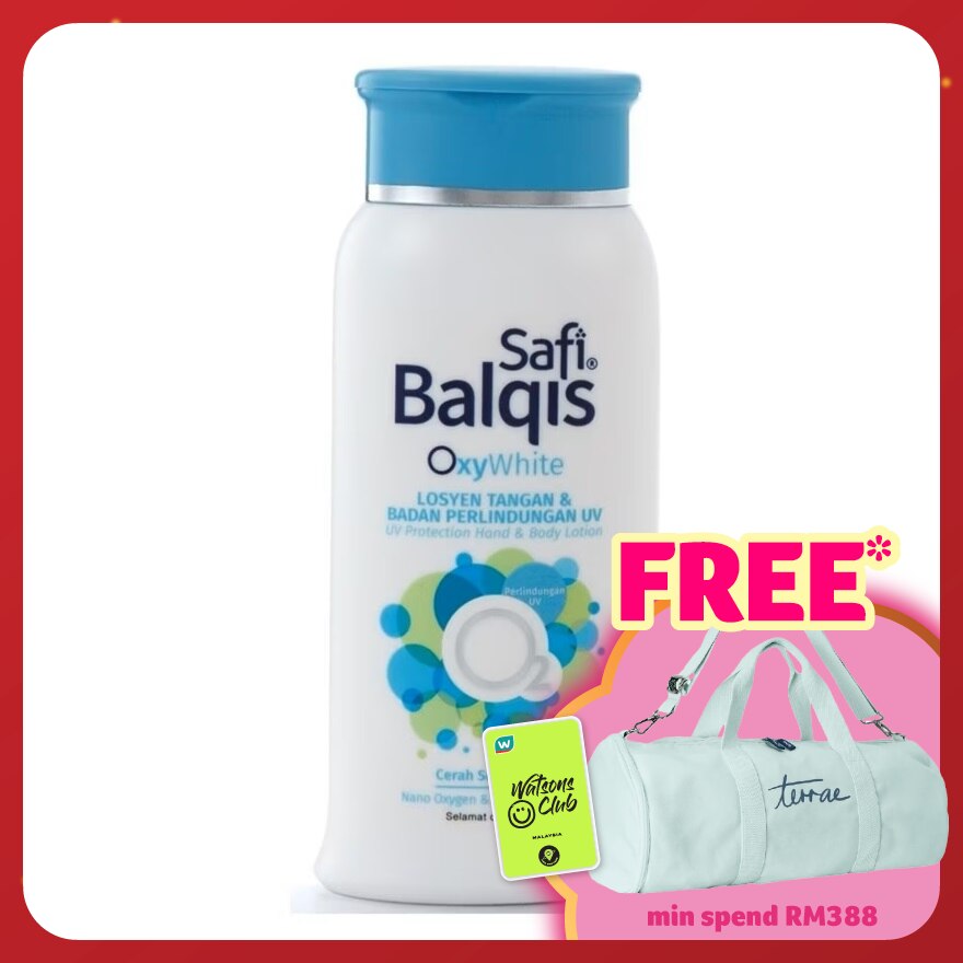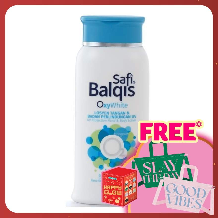 LOSYEN BADAN PERLINDUNGAN UV SAFI BALQIS OXYWHITE membantu membekalkan nutrien yang mencukupi untuk memelihara dan melindungi kulit daripada sinaran matahair yang memudaratkan. Dengan formulasi Nano Oxygen dan Nano BioWhite, ia bertindak untuk: i) Melindungi dari sinaran UV ii) Menyamaratakan tona kulit iii) Melindungi dari radikal bebas iv) Menghidrat dan memelihara kesihatan kulit v) Melambatkan pigmentasi kulit vi) Menghaluskan dan melembutkan kulit Hasilnya: kulit menjadi halus, mulus dan cerah sempurna!