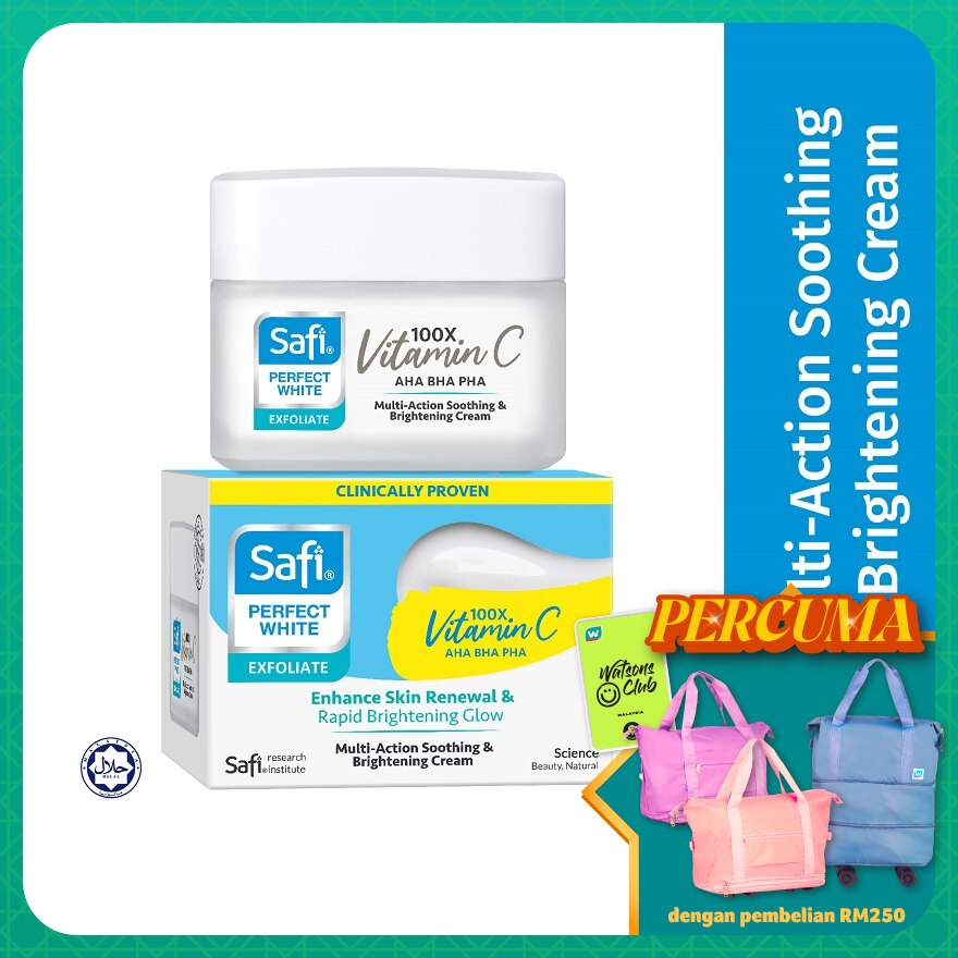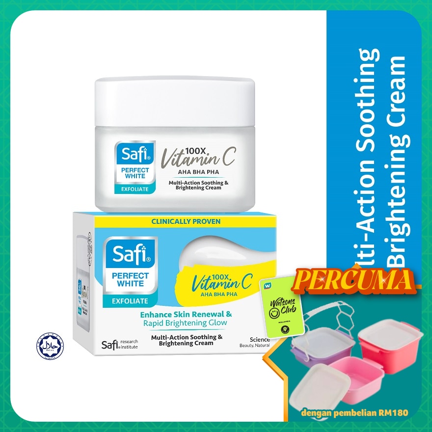 With Multi-Action Soothing & Brightening Cream , experience a visibly glowing and refined pore complexion thanks to our powerful 100x Vitamin C and AHA, BHA, PHA complex. Utilizing chemical exfoliation, it helps cleanse your skin deeply, while gently strips dead skin cells to reveal brighten skin and long-lasting instant results. Suitable for daily use, even on sensitive skin. 100x Vit C penetrates deep into the basal layer of skin to reduce the appearance of dark spots for brighter skin, sourced from Kakadu Plum, which contains 100x more Vitamic C than an orange. AHA BHA PHA Optimum combination of AHA, BHA and PHA working in synergy to gently exfoliate dead skin, resulting in brighter & glowing skin.