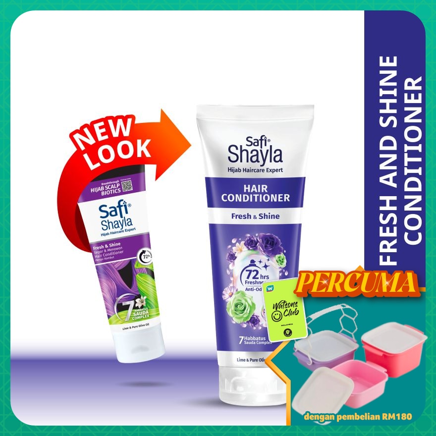 Safi Shayla Hair Conditioner Fresh & Shine now with Micro Bamboo Charcoal + Organic Habbatus Sauda + Pure Olive Oil moisturizes and replenishes hair while maintaining its natural volume and healthy shine. Fragrance lasts up to 48 hours*.