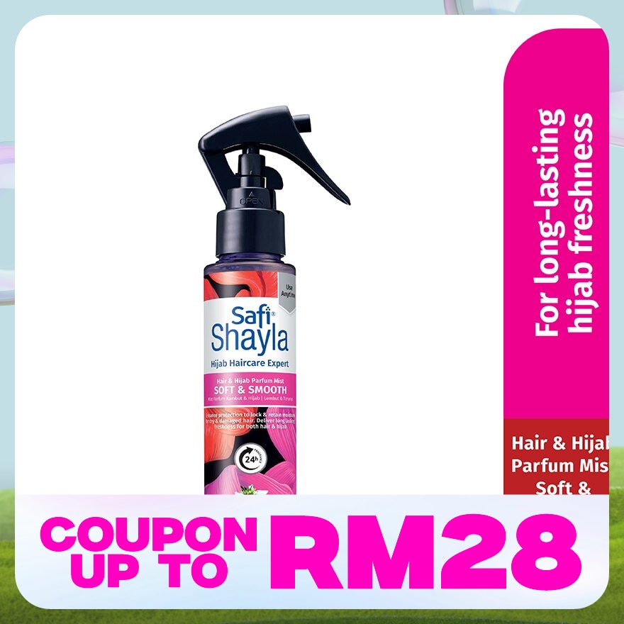 SAFI Shayla Mist Rambut/Hijab boleh disembur pada rambut atau tudung. Pengeringan cepat dan tidak meninggalkan tanda pada tudung. Ia menambah kelembapan, kelicinan, mengembalikan kilauan dan membuatkan rambut rasa lebih ringan. Kini haruman di rambut/hijab kekal sepanjang hari*.* 24 jam wangian berdasarkan ujian makmal.
