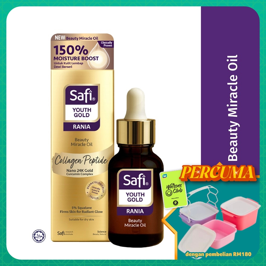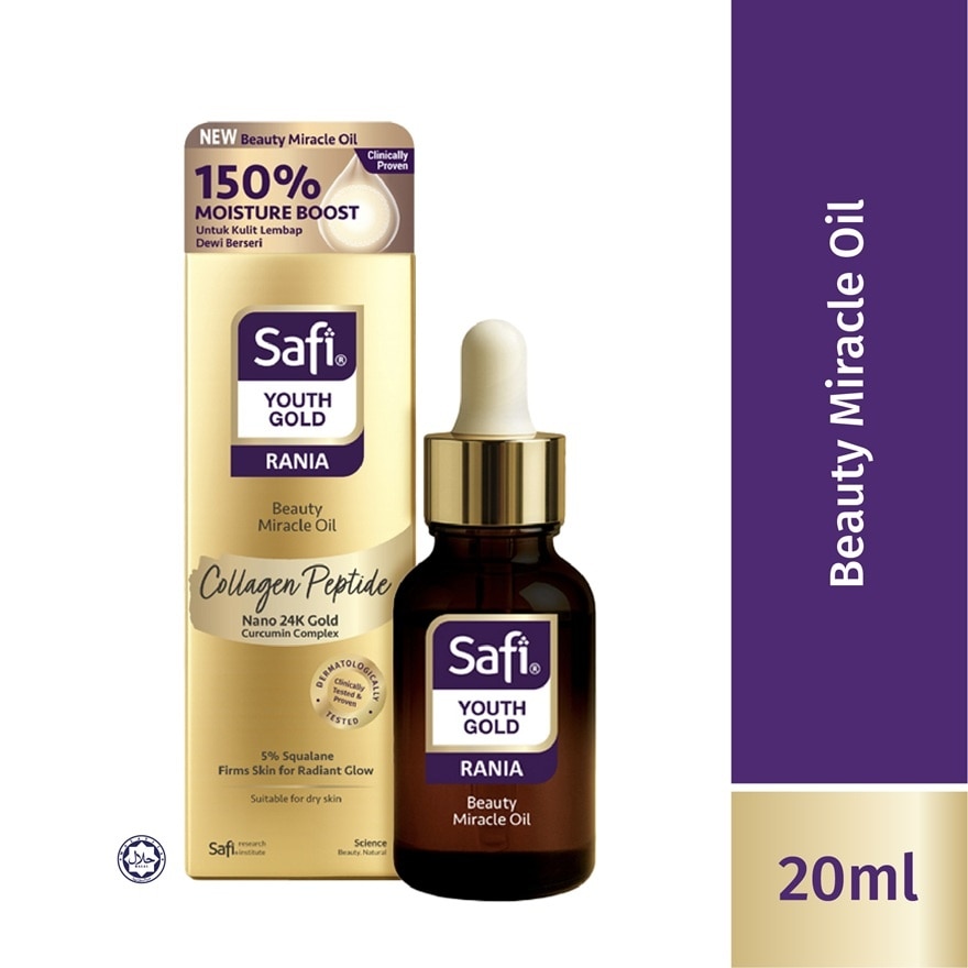 This ultra-light, fast-absorbing beauty oil deeply nourishes and hydrates while restoring skin’s elasticity and youthful glow. Enriched with plant-based Squalene from sustainable sugarcane and anti-aging Inca Inchi Oil, it soothes dryness, softens fine lines, strengthens the skin barrier, and supports healthy skin renewal - leaving a silky and non-greasy finish. Suitable for face, hair, cuticles, and body, this multipurpose oil delivers intensive hydration and a naturally radiant look. Enriched with Collagen Peptide, Curcumin Complex and Nano 24K Gold Peptide, it works to visibly enhance skin firmness and brightens skin tone- transforming dull skin into a supple, luminous, and more youthful-looking complexion. Inca Inchi Oil: Regenerates the epidermis and preserves the skin’s lipid balance; softening and improving skin texture. Squalane: Deeply hydrates to improve skin texture, enhance elasticity, and diminish fine lines; revealing smoother, plumper, and more radiant skin. Collagen Peptide: 150x smaller than native collagen for deep absorption; helps skin feel firmer, smoother, and glowing. Curcumin Complex: 200% stronger antioxidant power than Vitamin C; protects, calms stressed skin, and brightens for an even skin tone Nano 24K Gold Peptide (99.9% Pure): Boosts elasticity and skin defense; for lifted, firm, and radiant skin.
