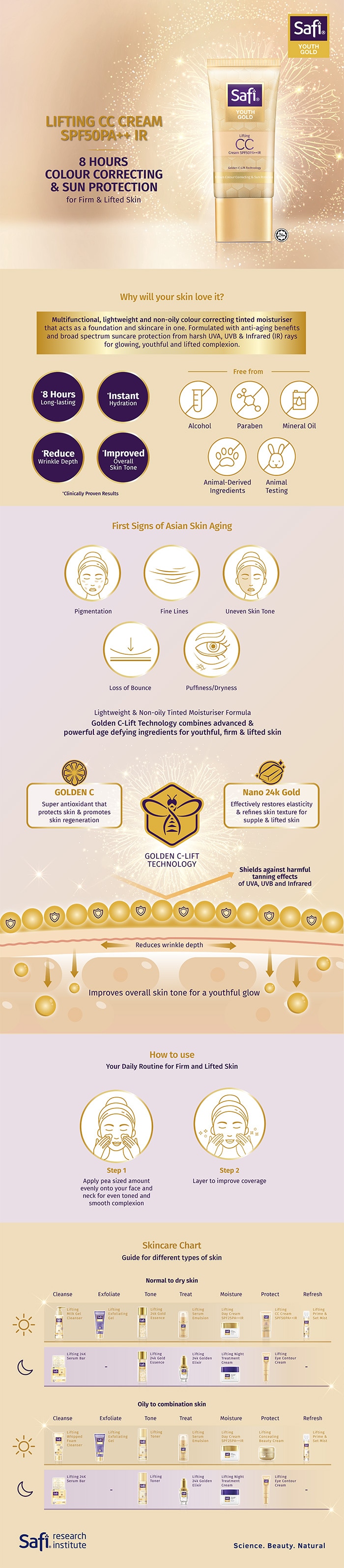 Ratakan pada wajah dan leher selepas menggunakan Penyegar dan Serum SAFI RANIA GOLD.