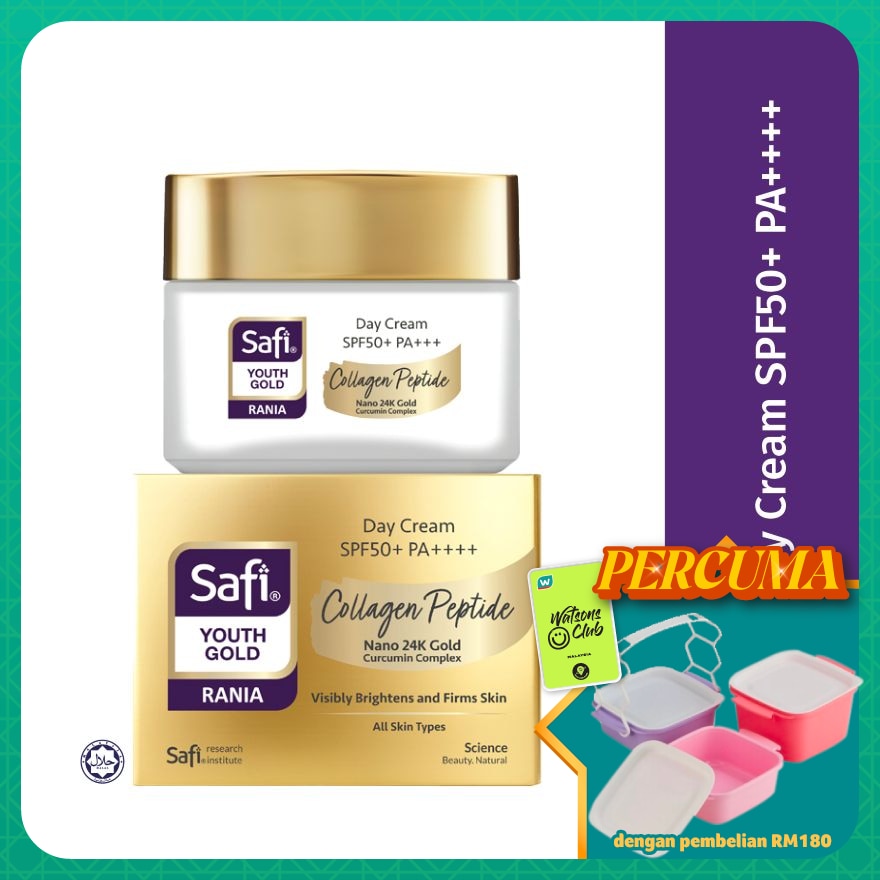 Sapukan pada wajah dan leher. Urut lembut dalam gerakan menaik. Gunakan selepas Penyegar dan Serum SAFI RANIA GOLD.
