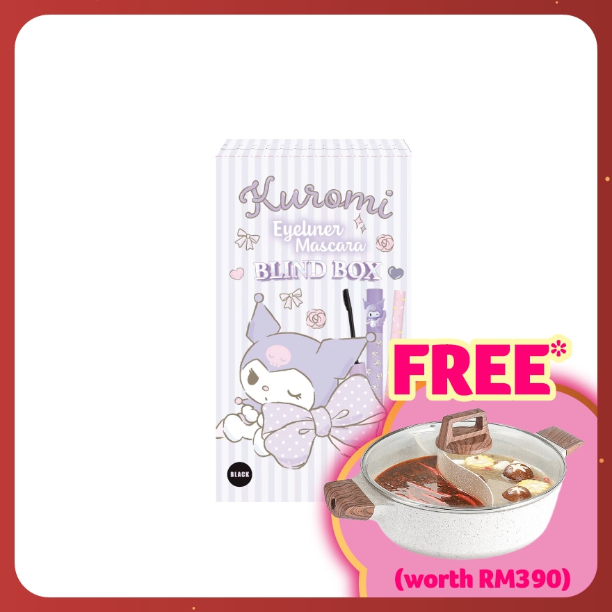 Unleash your Inner rebel with the Kuromi Mascara and Eyeliner Duo Blind box! Featuring the two must-have eye essentials - a voluminous mascara for bold, fluttery lashes and a smudge-proof eyeliner for a cool and edgy look. If you are lucky, you will be in for a secret surprise in one of our blind boxes and receive an exclusive Kuromi item.