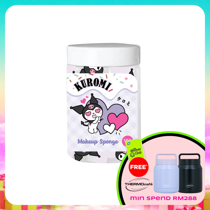 Made of high-quality and soft sponge material, the sweetheart makeup sponge ensures long-lasting durability and provides an even, flawless application of your makeup. The sponge adopts a cute heart-shaped mixed with Kuromi design which adds a fun and twist to your daily routine. Packaged beautifully in a bottle, this makes a good gift for fans of Sanrio Kuromi.