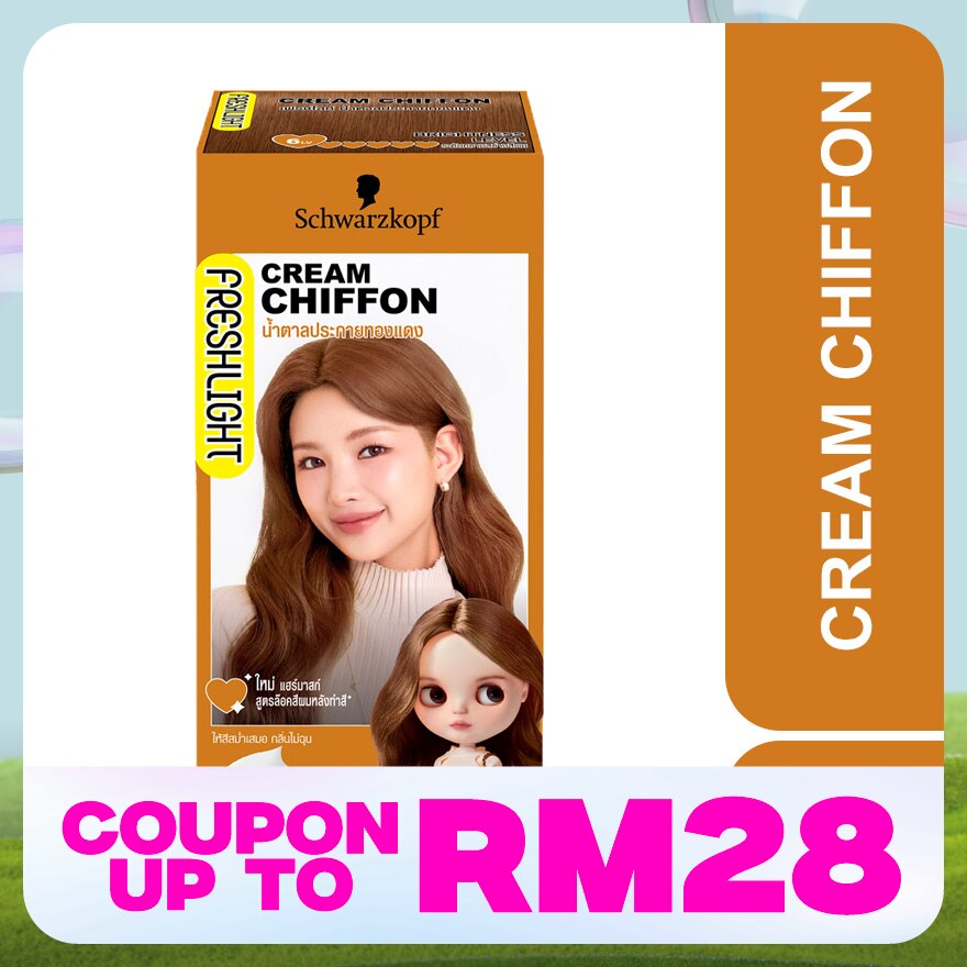 Freshlight Foam Colour Cream Chiffon : Aqua (Water, Eau), Ammonium Bicarbonate, Cocamidopropyl Betaine, Ammonium Hydroxide Propylene Glycol, Sodium Chloride, Parfum (Fragrance), Sodium Sulfite, 4-Amino-2, Hydroxytoluene, p-Aminophenol, Ascorbic Acid, Tetrasodium EDTA, Sodium Sulfate, Ammonium Carbonate, Sodium Benzoate, Toluene-2,5-Diamine Sulfate, Potassium Hydroxide, Betaine, Sodium PCA, Sorbitol, Serine, Glycine, Glutamic Acid, Alanine, Arginine, Lysine, Threonine, Proline. Developer: Aqua (Water, Eau), Ceteth-40, Hydrogen Peroxide, Glycerin, Cocamine Oxide, Behenyl Alcohol, Phosphoric Acid, PEG-45 Stearate, Phenoxyethanol, Polyquaternium-6, Polyquaternium-10, Etidronic Acid. Hair Mask : Aqua, Cetearyl Alcohol, Dimethicone, Amodimethicone, Isopropyl Myristate, Behentrimonium Chloride, Distearoylethyl Hydroxyethylmonium Methosulfate, Stearamidopropyl Dimethylamine, Cetyl Palmitate, Dipropylene Glycol, Fragrance, Phenoxyethanol, Isopropyl Alcohol, Methylparaben, Bisamino PEG/PPG-41/3 Aminoethyl PG-Propyl Dimethicone, Lactic Acid, Panthenol, Succinic Acid, Magnesium Chloride, Vegetable Oil, Guar Hydroxypropyltrimonium Chloride, Steardimonium Hydroxypropyl Hydrolyzed Keratin, Camelina Sativa Seed Oil, Hydrolyzed Keratin, Sodium Hyaluronate, Pentaerythrityl Tetra-Di-t-Butyl Hydroxyhydrocinnamate, Potassium Sorbate.