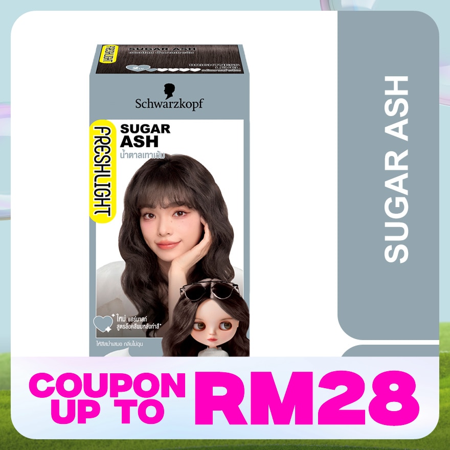 Freshlight Foam Colour Sugar Ash: Aqua (Water, Eau), Ammonium Bicarbonate, Cocamidopropyl Betaine, Ammonium Hydroxide, Propylene Glycol, Sodium Chloride, Toluene-2,5-Diamine Sulfate, Potassium Hydroxide, Parfum (Fragrance), Sodium Sulfite, 2,4-Diaminophenoxyethanol HCl, Resorcinol, Ascorbic Acid, Tetrasodium EDTA, Sodium Sulfate, Ammonium Carbonate, Sodium Benzoate, 4-Amino-2-Hydroxytoluene, Betaine, Sodium PCA, Sorbitol, Serine, Glycine, Glutamic Acid, Alanine, Arginine, Lysine, Threonine, Proline. Developer: Aqua (Water, Eau), Ceteth-40, Hydrogen Peroxide, Glycerin, Cocamine Oxide, Behenyl Alcohol, Phosphoric Acid, PEG-45 Stearate, Phenoxyethanol, Polyquaternium-6, Polyquaternium-10, Etidronic Acid. Hair Mask : Aqua, Cetearyl Alcohol, Dimethicone, Amodimethicone, Isopropyl Myristate, Behentrimonium Chloride, Distearoylethyl Hydroxyethylmonium Methosulfate, Stearamidopropyl Dimethylamine, Cetyl Palmitate, Dipropylene Glycol, Fragrance, Phenoxyethanol, Isopropyl Alcohol, Methylparaben, Bisamino PEG/PPG-41/3 Aminoethyl PG-Propyl Dimethicone, Lactic Acid, Panthenol, Succinic Acid, Magnesium Chloride, Vegetable Oil, Guar Hydroxypropyltrimonium Chloride, Steardimonium Hydroxypropyl Hydrolyzed Keratin, Camelina Sativa Seed Oil, Hydrolyzed Keratin, Sodium Hyaluronate, Pentaerythrityl Tetra-Di-t-Butyl Hydroxyhydrocinnamate, Potassium Sorbate.