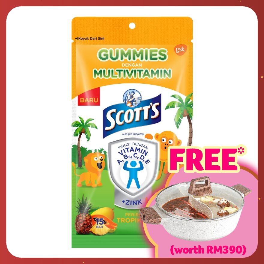 Glucose Syrup, Sugar, Gelatin (Bone from cow, goat, sheep, buffalo and other HALAL animal), Acidity Regulator (Citric Acid, Sodium Citrate), Humectant (Sorbitol), Flavouring substance, Vitamin C, Zinc, Vitamin E, Vitamin B6, Vitamin A, Vitamin D and Colouring substance (FD&C Yellow 5).