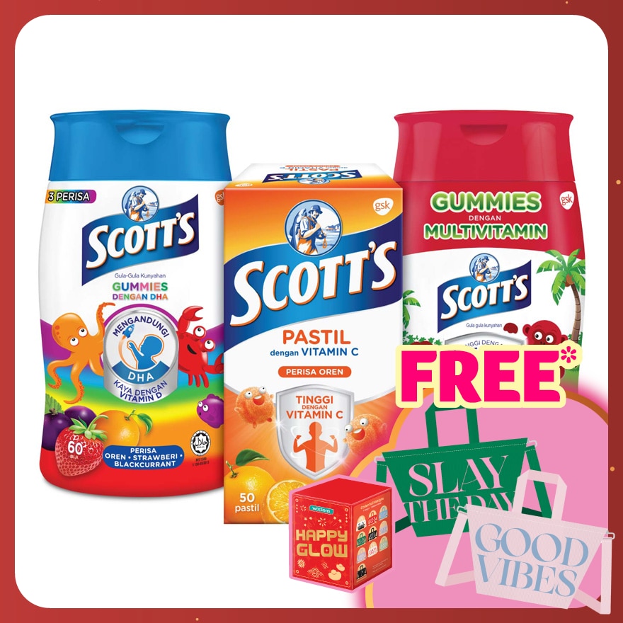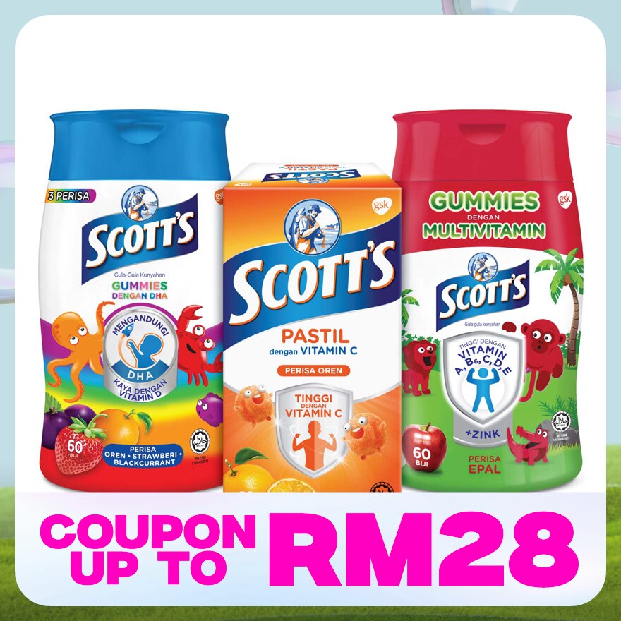 "SCOTT's DHA Gummies are designed especially for older kids (5+) in delicious fruity flavors that children enjoy with the benefits of fish oil Omega 3 fatty acid DHA and a rich source of Vitamin D.Halal certified.Scott's DHA Chewable Gummies, Fish Oil Omega 3 Children Supplement for Immunity and Brain Development Support, Assorted Flavour, (1 x 60s)