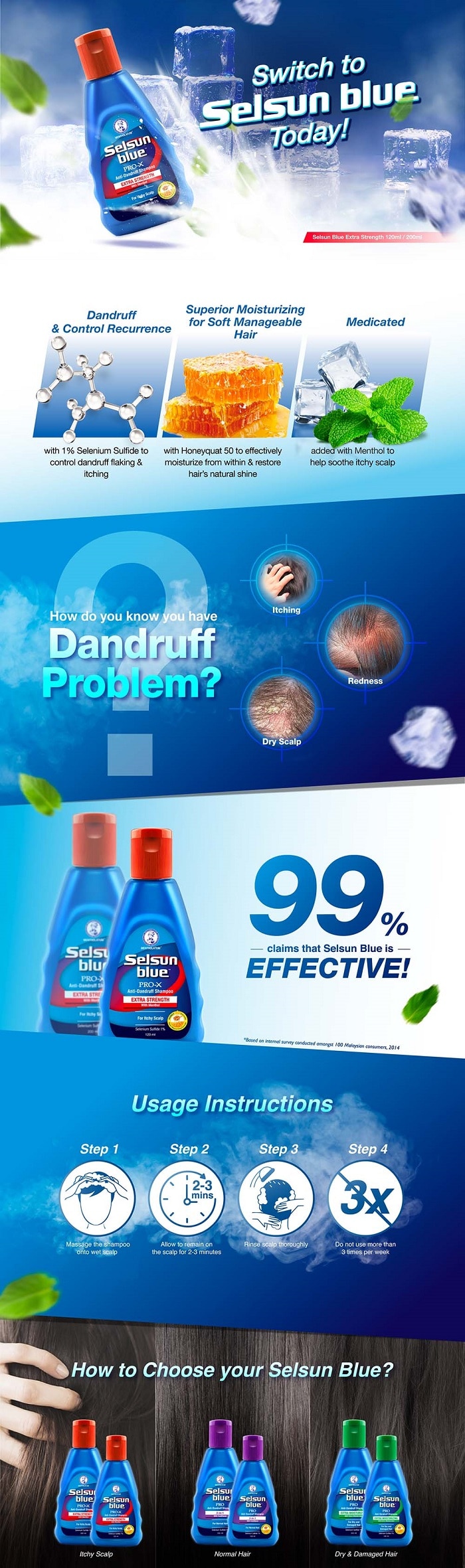 Stay Dandruff free with Selsun Blue Extra Strength Anti-Dandruff Shampoo. With French Honey Quat & Menthol to help moisturize the hair and relieve itchy scalp.