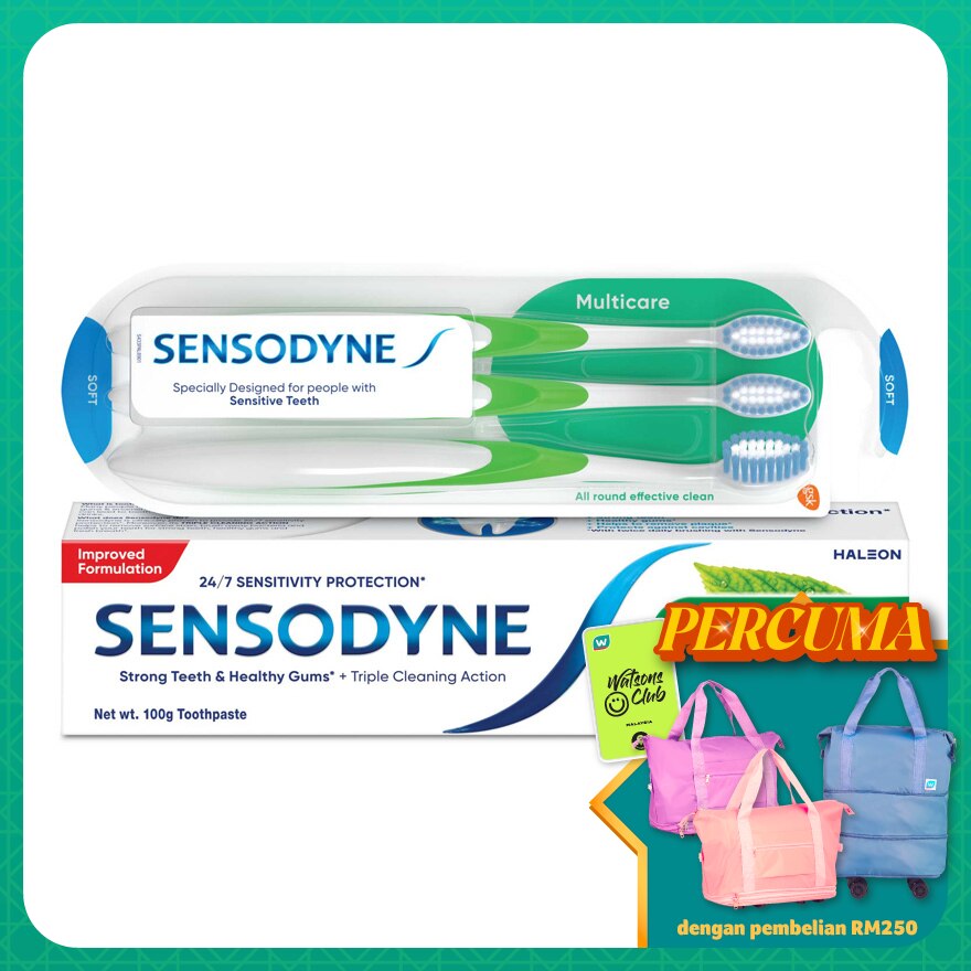 Fresh Mint Relief Sensitive Teeth Toothpaste 100g and Sensitive Teeth Multicare Soft Toothbrush 3S