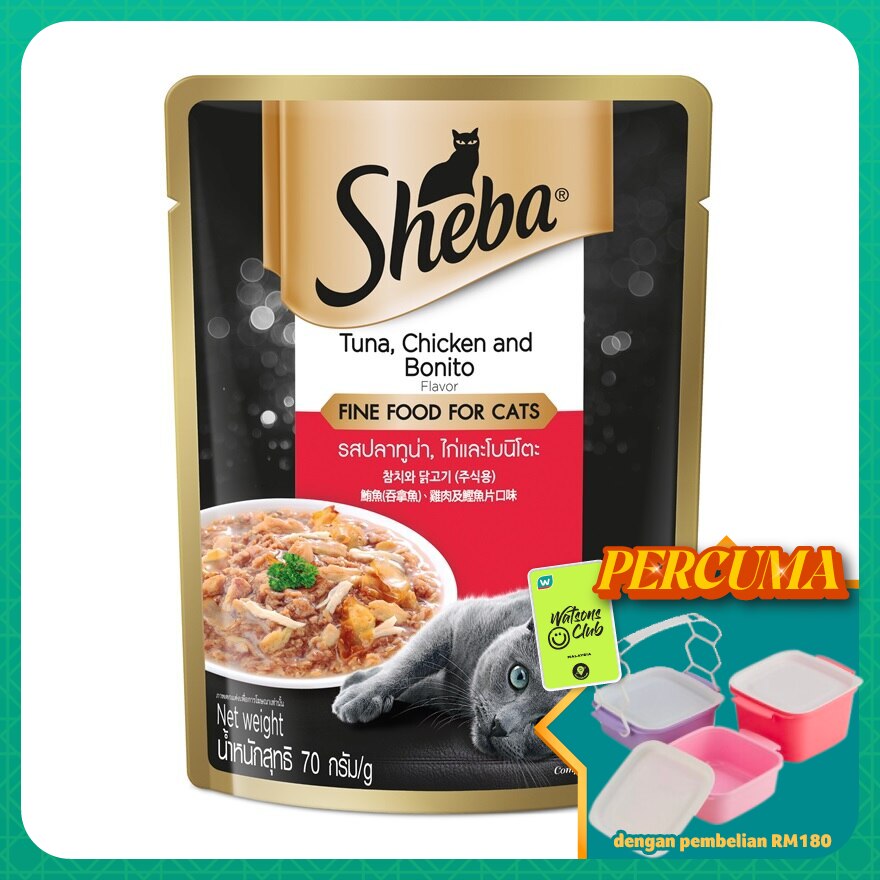 Tuna, Chicken and chicken by products, amino acid, beef liver, dried bonito flake, soybean oil, minerals, gelling agents, wheat gluten, vitamins, taurine, EDTA, colouring agents