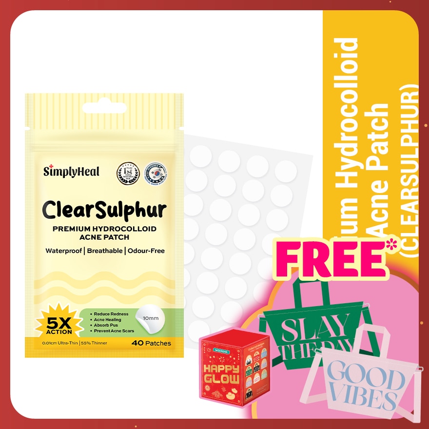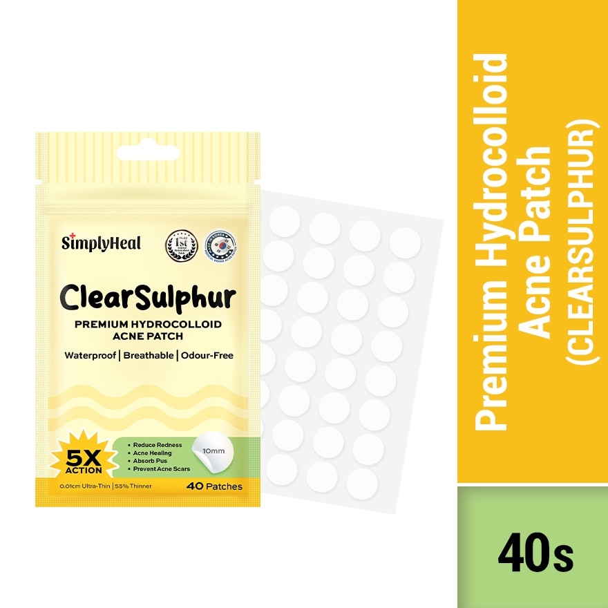 Ultra-thin hydrocolloid patch adheres snugly to skin and accelerates absorption of impurities. Breathable & waterproof design camouflages blemishes while keeping out external pollutants. Pure Tea Tree Oil soothes irritation and helps clear acne. CICA Extract promotes fast recovery and helps prevent post-acne marks. Pure Sulphur provides keratolytic, antibacterial and anti-inflammatory benefits to tackle blemishes at the source.