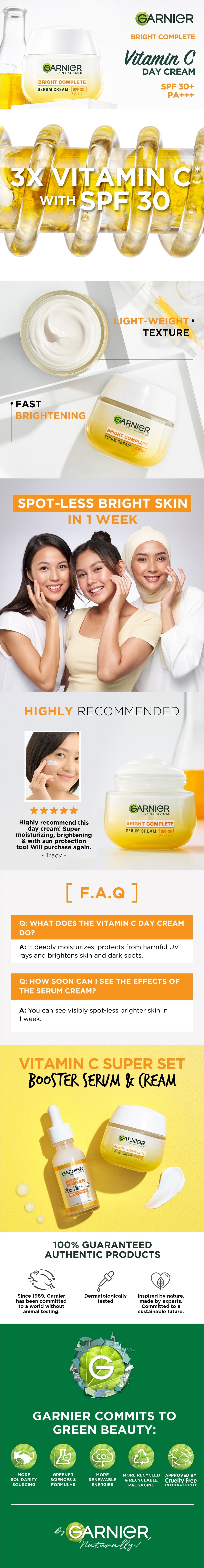 New Innovation Garnier Light Complete Serum Cream SPF 19 PA +++ with 3X Vitamin C* and fresh Yuzu Lemon Fruit from Japan.