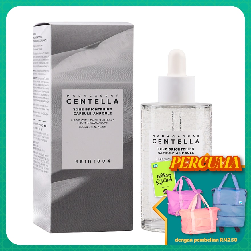 SKIN1004 Madagascar Centella Tone Brightening Capsule Ampoule is a fast absorbing ampoule that will provide you with clear and brightened skin. Formulated with hero ingredients Centella Asiatica Extract and niacinamide provide brightening, hydration and skin-soothing benefits. The highly effective and yet light-weight ampoule contains small beads that helps to enhance stability and improve dull and tired skin for a glowing and healthy appearance.