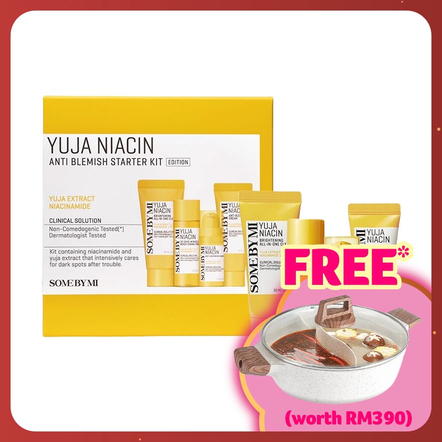 Information: SOME BY MI Yuja Niacin Anti Blemish Starter Kit is a 4-step skincare regimen designed to target dullness, hyperpigmentation, and uneven skin tone. Infused with high concentrations of Yuja (Citrus Junos) extract and Niacinamide, this kit aims to brighten the complexion, reduce dark spots, and provide antioxidant protection. Each product in the kit works synergistically to cleanse, tone, treat, and moisturize the skin, making it suitable for those seeking a radiant and even skin tone. Ingredients We Love: Yuja (Citrus Junos) Extract - Rich in Vitamin C, it helps to brighten the skin and provide antioxidant benefits. Niacinamide (Vitamin B3) - Improves skin elasticity, enhances the barrier function, and evens out skin tone. Glutathione & Arbutin - Powerful antioxidants that help to reduce melanin production, leading to a brighter complexion. Panthenol (Provitamin B5) - Moisturizes, soothes, and helps to repair the skin barrier. 12-Vitamin Complex - Provides nourishment and revitalizes the skin.