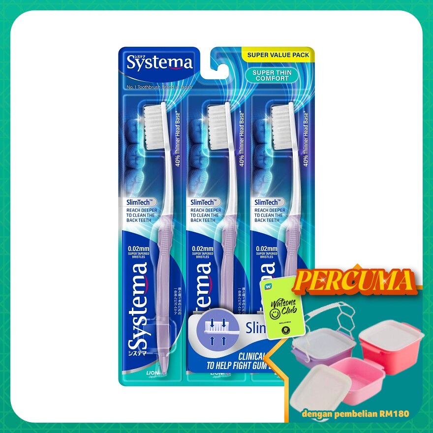 Systema Toothbrush Super Thin Comfort 3s. Penetrate deeper into the space between teeth and gums, removing plaque effectively.