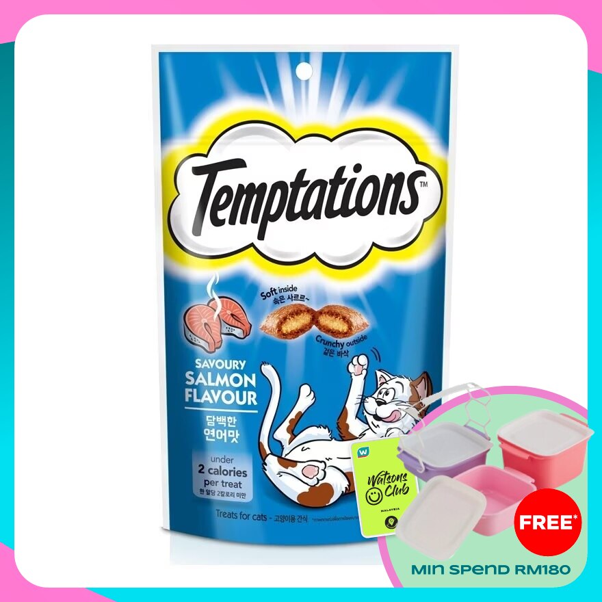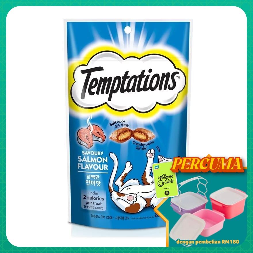 1. Delicious dual-textured cat treats with a tasty, crunchy outside and an irresistible soft centre.2. Available in different flavour such as tasty chicken, creamy dairy, savoury salmon, seafood medley and tempting tuna flavour3. Less than 2 Kcal in every cat treat.4. With no artificial flavours.5. Resealable Pouch to keep your cat treats fresh