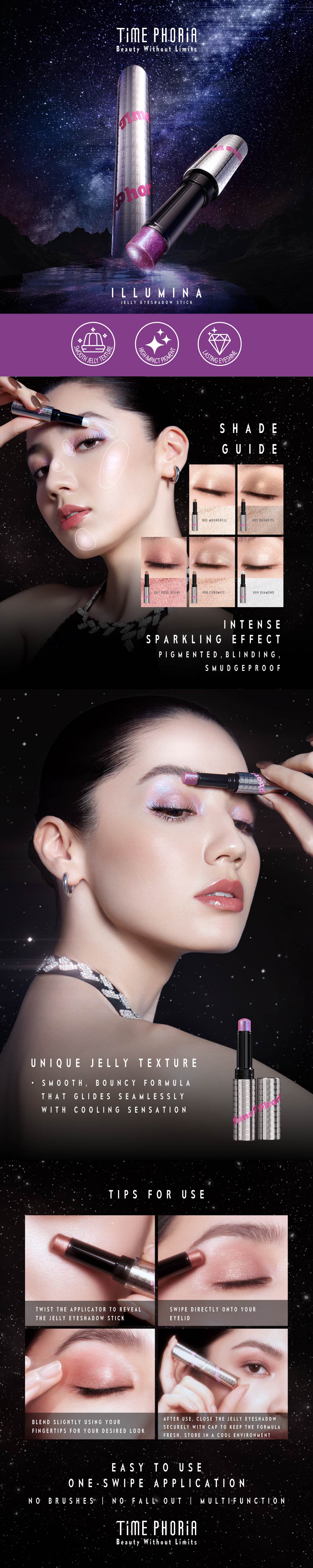 Smooth Jelly Texture Unique bouncy jelly texture that cares for delicate eye area while delivering multidimensional radiance. High Pigment Ultra-fine Intense metallic payoff with hydrating wear and eye-care benefits. Smart Particle Adhesion Hydrogel Lock Matrix Oil-Free Hydrophilic Formula"