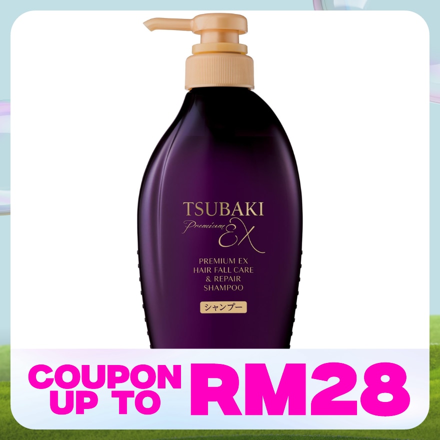 TSUBAKI PREMIUM EX HAIR FALL CARE & REPAIR Shampoo for 5x less hairfall for visibly thicker, shinier hair in 10 days of use. Contains bond restore technology with improvement in cuticle opening & reduces friction on hair for smoother hair. It also comes with scalp care complex with ingredients prove to give moisturised scalp. 0 Seconds Wait Time. Japan Salon-Quality Hair at Home. NEW TSUBAKI OIL FORCE lock in 72hours of shine and get bouncy hair with Microparticulation and ShineLock Technology Make your hair beautiful with just one wash. Contains NEW TSUBAKI OIL FORCE. . It reaches inside thin, brittle hair, strengthens it from the roots up, and leaves your scalp healthy, making your hair voluminous and bouncy with a vibrant shine. - Strength bond repair S ingredients (seaweed complex, polyquaternium-10: repairing, protection) Eucheuma serra/grateloupia sparsa/saccharina angustata/ulva linza/undaria pinnatifida extract NEW TSUBAKI OIL FORCE lock in 72hours of shine and get bouncy hair with Microparticulation and ShineLock Technology * TSUBAKI OIL FORCE (Camellia japonica seed oil, phytosteryl macadamiate, phytosterol/octyl dodecyl lauroyl, squalane: repairing, moisturizing, shining)