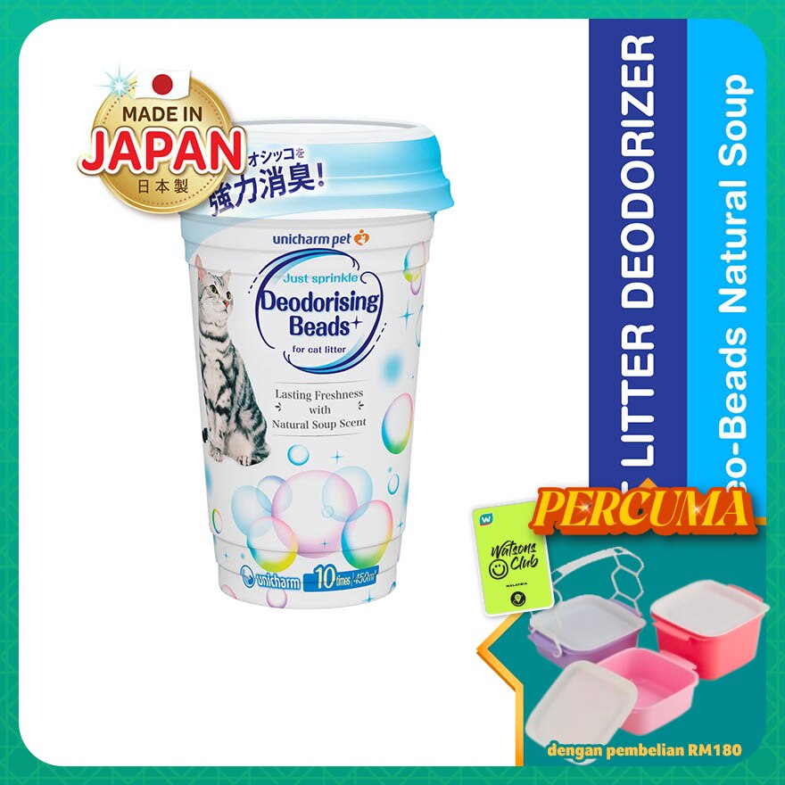 Simply by sprinkling your favourite scent of Deo-Beads on any type of cat litter.