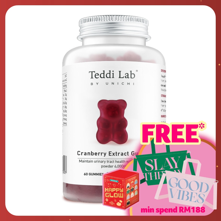 Teddi Labs Cranberry Extract Gummy is a scientifically formulated and convenient solution to support women’s intimate health. Each cranberry gummies contains a high concentration of 'North American Ruby' Cranberry Extract, extracted at a potent 25:1 ratio from 6,000mg of dried cranberry powder per serving, ensuring powerful and effective care.These cranberry vitamins are designed to provide comprehensive support for the female urinary system without impacting menstrual cycles. It protects the uterus, and enhances immune system function, making them an essential addition to women’s wellness routines.This urinary tract supplement has a combination of Vitamin D3 and Cranberry Extract boosts the immune system, reduces the risk of urinary tract bacterial infections, and inhibits the attachment and reproduction of harmful bacteria. This reduces infection frequency and recurrence, while also providing relief by alleviating discomfort such as itching and inflammation.Experience the scientifically tailored power of cranberry for uti or your intimate health in a delicious, effective, and convenient way.