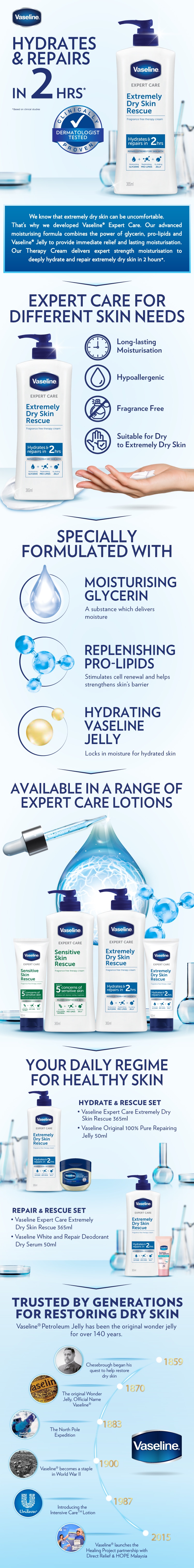 Apply Vaseline® Expert Care twice a day for best results. Apply thoroughly to avoid product rubbing off on clothes.