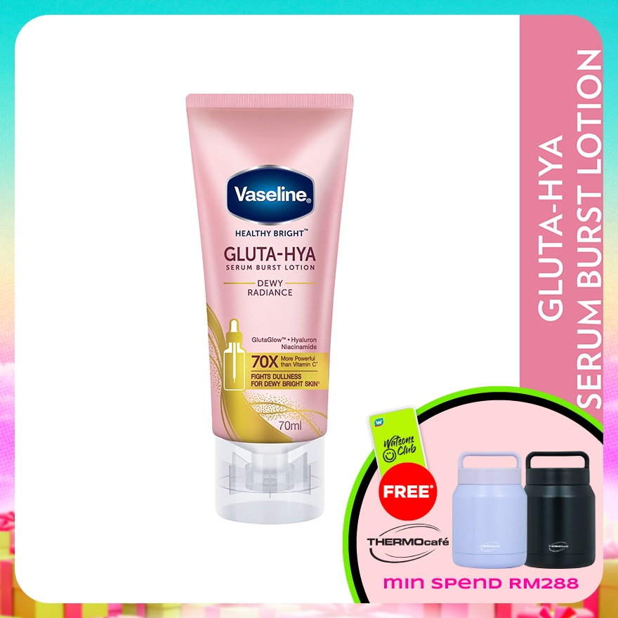 We believe everyone, everywhere deserves healthy & restored skin. So we created the Dewy Radiance Serum Burst Lotion, which can give bright & glowing skin^ with its clinically proven formula. - Boosted with GlutaGlow technology, which is 10X more powerful than Vitamin C+. Vaseline also helps to reduce the causes of dull skin. - Hyaluron is known to boost the skin's moisture for dewy skin. - 10X Active Niacinamide* boosts skin's natural radiance. - Vaseline Jelly is renowned for its ability to lock moisture deep from within", restoring the skin's natural balance**. Our unique formula bursts into water droplets and is instantly absorbed upon application. Experience skin that is more bright and glowing^. - Non-sticky formula. - Clinically proven. +From comparative antioxidant performance, based on in vitro test. *Compared to Vaseline SPF 24 PA++ Lotion. "In the epidermis. **Moisture balance. ^Based on clinical test, with regular use. Results vary depending on the individual's skin condition.