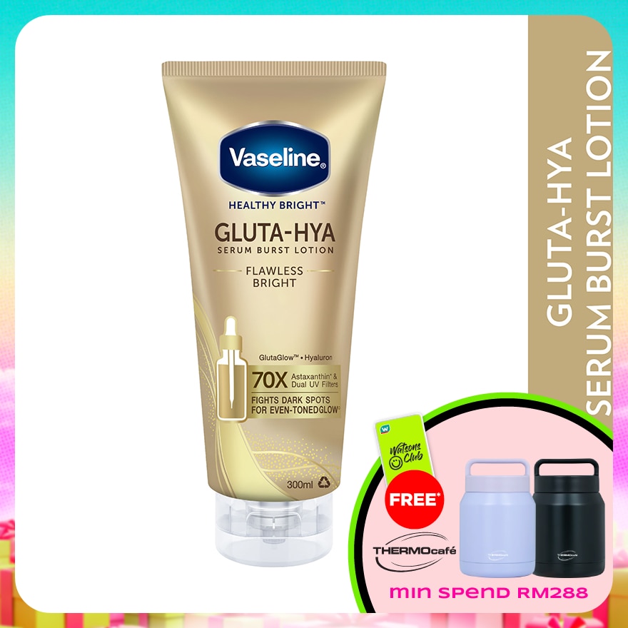 We believe everyone, everywhere deserves healthy & restored skin. So we created the Flawless Bright Serum Burst UV Lotion, which can reduce dark spots to give even-toned skin** with its clinically proven formula. - Boosted with GlutaGlow technology, which is 10X more powerful than Vitamin C+. Vaseline also helps to reduce the causes of dull skin. - Hyaluron is known to boost the skin's moisture for dewy skin. - 10X Pro-Retinol* is known for helping to exfoliate dead skin cells to give even-toned skin. - Double UV Filters for 8X sun protection^. - Vaseline Jelly is renowned for its ability to lock moisture deep from within", restoring the skin's natural balance^^. Our unique formula bursts into water droplets and is instantly absorbed upon application. Experience skin that is more bright and even-toned**. - Non-sticky formula. - Clinically proven. +From comparative antioxidant performance, based on in vitro test. *Vitamin A content vs Acerola Cherry. ^ Includes both UVA and UVB protection, with SPF8 compared to not using the product. "In the epidermis. ^^Moisture balance. **Based on clinical test, with regular use. Results vary depending on the individual's skin condition.