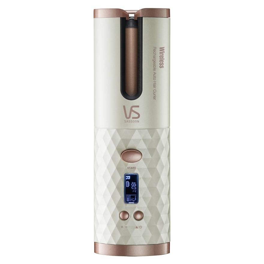 200C, 19mm ceramic coated heating tube to create perfectly defined curls, auto rotating direction (left, right or mix), LCD display, 3 temperature settings (160C, 180C & 200C), 4 timer settings (6, 8, 10 & 12 seconds), rechargeable in full power (4.5 hours) with USB cable, built-in lithium ion battery, 60 minutes run time, freedom of cordless hairstyling.