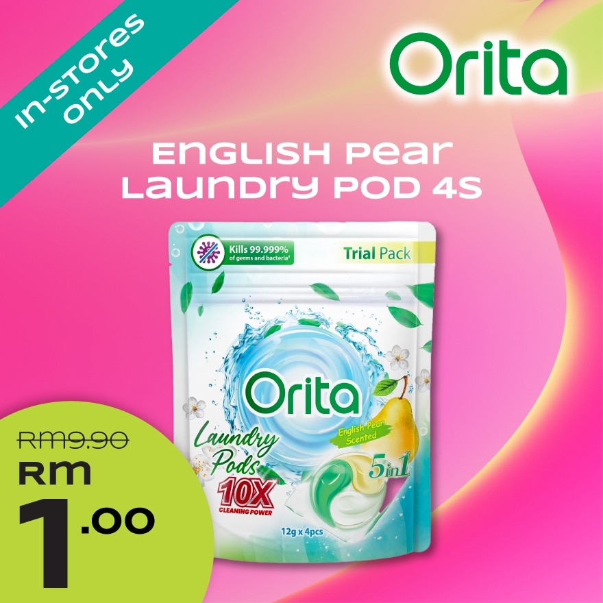 1) Use 10 points to redeem 2) Get ORITA English Pear Laundry Pods 12G X 4S for RM1.00 3) Only one voucher can be used per transaction