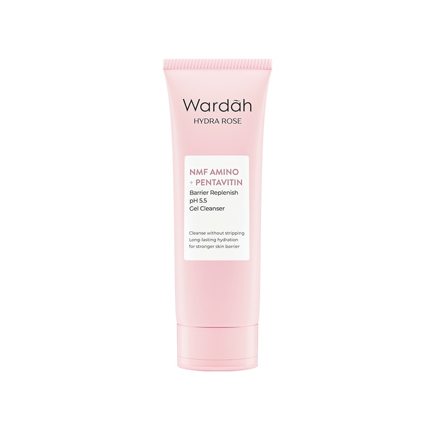 Mild foaming facial wash with soft gel texture containing 72 hours hydration active and droplets of rose oil cleanses face from dust, oil, dirt, and make up without making skin feel dry after rinsing. Skin is clean but still moist and hydrated.