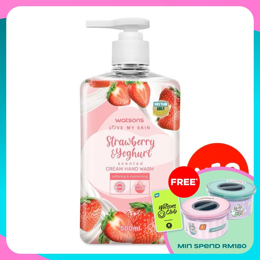 Watsons Strawberry & Yoghurt Scented Cream Hand Wash gently and effectively cleanses and protects your hand from dryness. This nourhsin g cream hand wash comes in a fruity scent. It leaves your hands clean, soft, and smooth, for a fresh feeling.