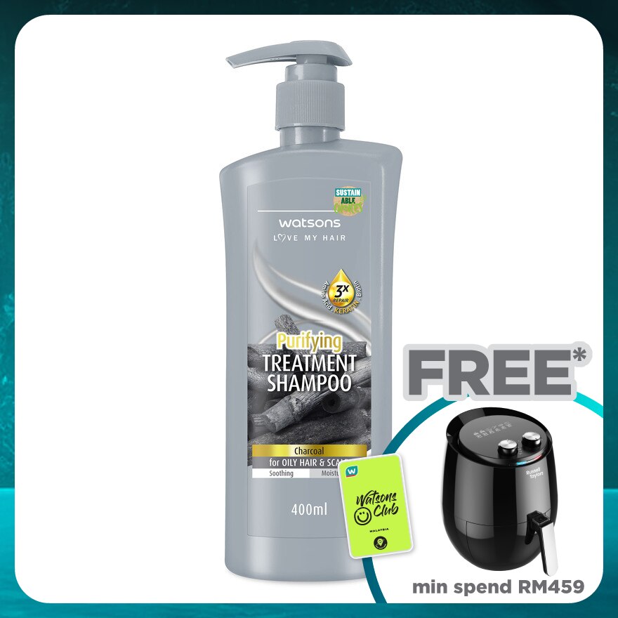 Promote a reduced usage of virgin materials by using recycled content instead The bottle is made with 30% recycled plastic. Watsons Charcoal Treatment Shampoo reinforced with hair-strengthening Keratin, this exclusive blend combines the "beauty vitamin" Biotin and 11 types of Amino Acid to help make hair more resilient and maintain scalp health while imparting long-lasting moisture for beautiful, silky-smooth results. Charcoal extract help detoxifying and remove dirts & impurities while Bark Extract provideanti-dandruff and anti-itch benefits. With the help of Brown Algae Extract it help repair damage and enhance shine of your hair.