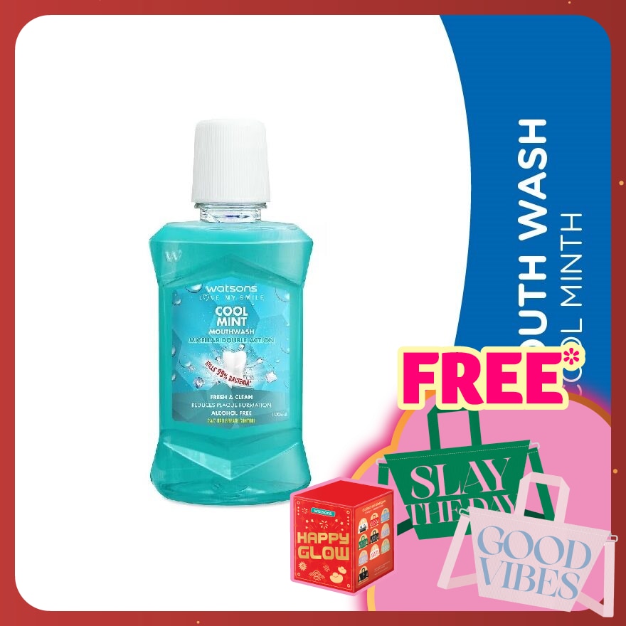Promote a reduced usage of virgin materials by using recycled content instead The bottle is made with 50% recycled plastic. Watsons Cool Mint Mouthwash contains Sodium Fluoride to help prevent cavities. This alcohol-free formula is specially designed to work gently on gums. Its mint flavor helps freshen your breath and leaves your mouthfeeling cool and clean.