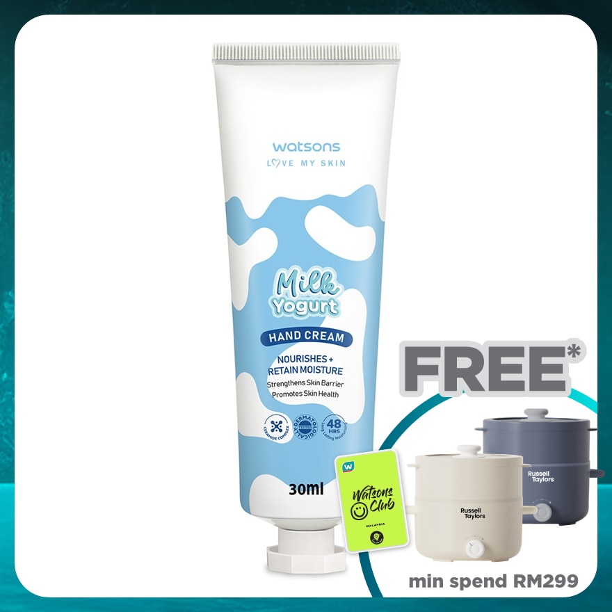 Indulge your skin with Watsons Milk Yogurt Hand Cream Extra Milk, enriched with Ceramide for deep moisture and nourishment. Featuring hydrolyzed milk protein for hydration and softness, plus yogurt extract to condition skin. Enjoy long lasting hydration and silky smooth, resilient skin.