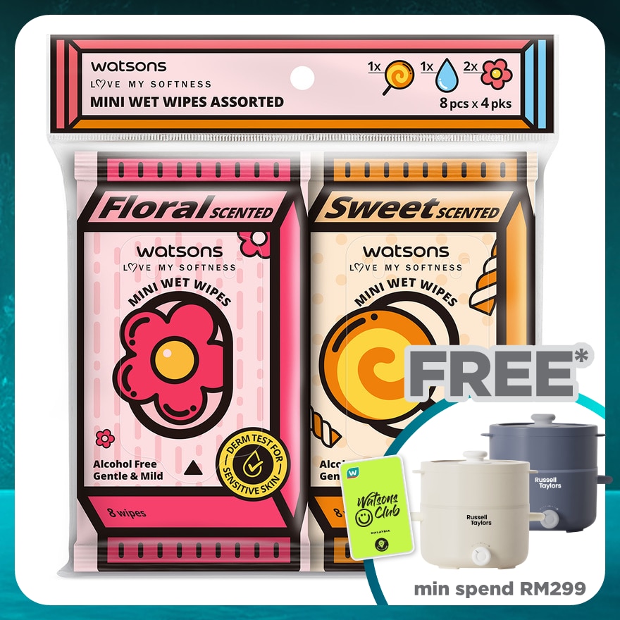 Watsons Mini Wet Wipes Oceanic Scented is alcohol free, formulated with Purified Water to provide extra moisture. Portable size, convenient to carry and use.