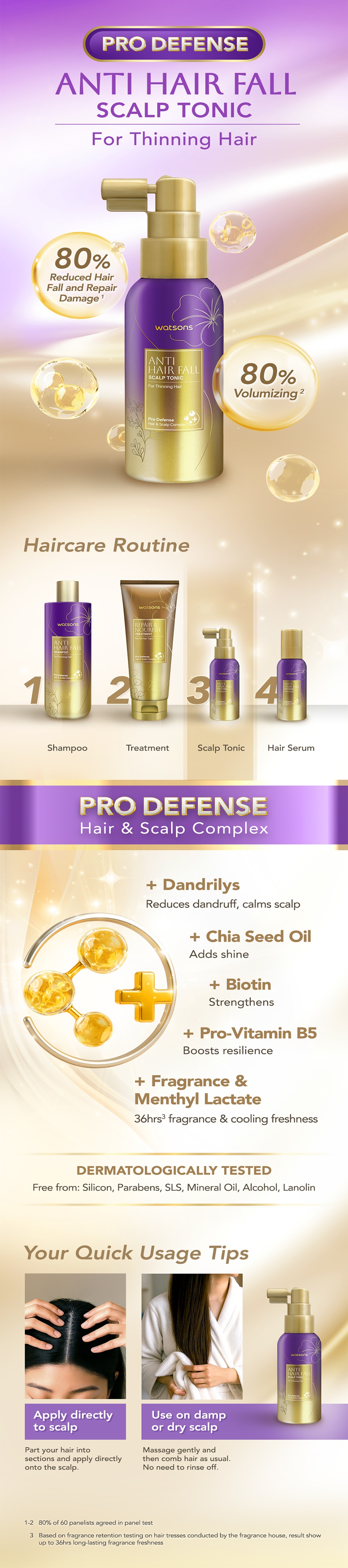 Strengthen and reduce hair fall with Watsons Anti-Hair Fall Scalp Tonic. It hydrates and soothes the scalp while delivering essential nutrients to nourish and improve hair resilience for fuller, healthier-looking strands.