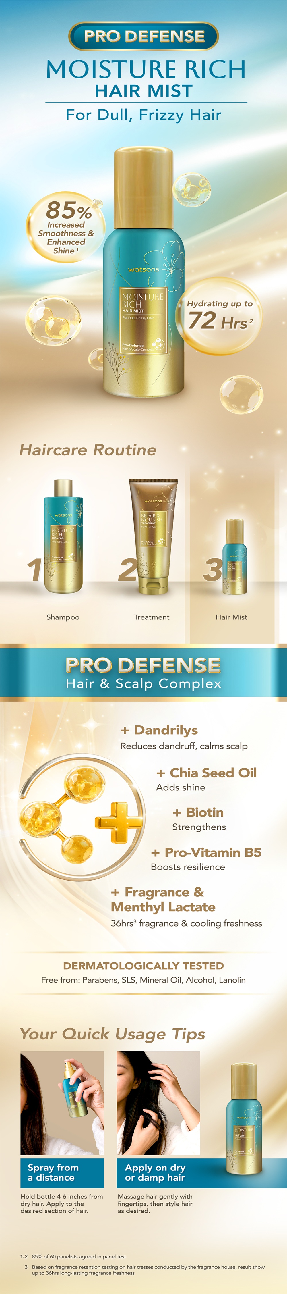 Energize and refresh hair anytime with Watsons Moisture Rich Hair Mist. This lightweight, leave-in formula hydrates, helps reducing breakage, and protects against heat damage (heat resistant), leaving hair soft, shiny, and healthy.