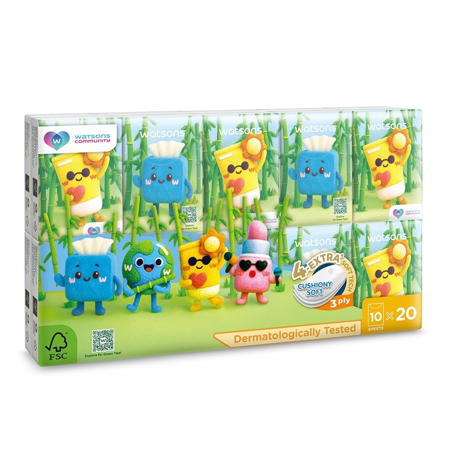 Watsons Tissue harnesses the power of 4-EXTRA SOFT-TECH, making it *"EXTRA" SOFT, STRONG, ABSORBENT and SMOOTH for a richly cushioned feel. By using fast-growing, natural, unbleached bamboo pulp with FSC certification instead of wood pulp, we're contributing to sustainable forestry. We also guarantee that all tissues are dermatologically tested and proven safe for sensitive skin.