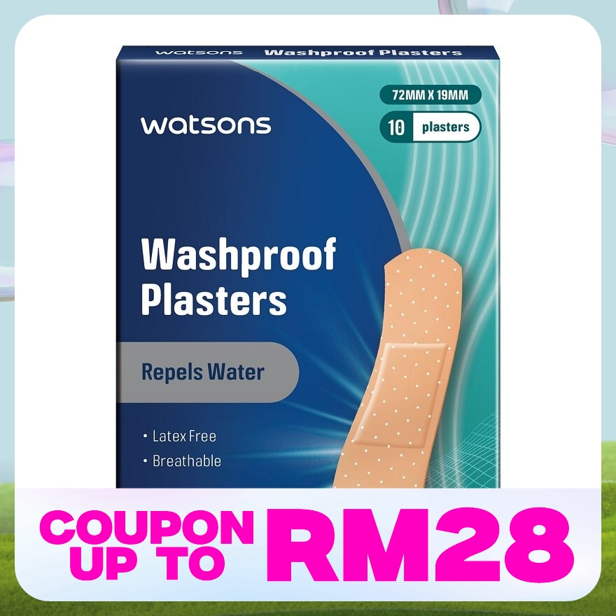 Watsons Washproof Plaster is Breathable, Repels water, Sterile, Latex free.Registered Under Act 737.MD Registration number: GA6161921-63034Advertisement Approval number: MDAMD 0128/2024