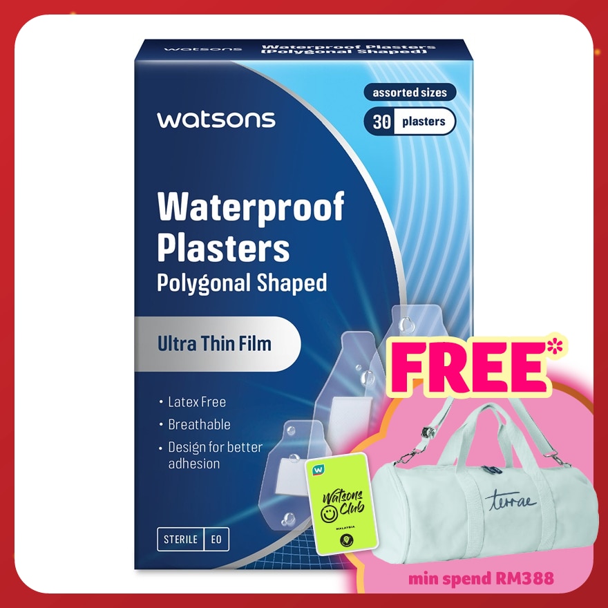 Watsons Waterproof Plaster Plygonal shaped is Breathable, Waterproof, Sterile, Latex free & suitable for sensitive skin. Registered Under Act 737. MD Registration number: GA9225923-141704 Advertisement Approval number: