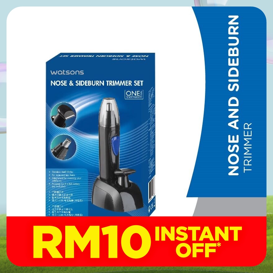 Watsons Nose Side Burn Trimmer Set is to remove unwanted nose and ear hair with the precision rotating blades without irritation, powered by 1 x AA battery (not included)