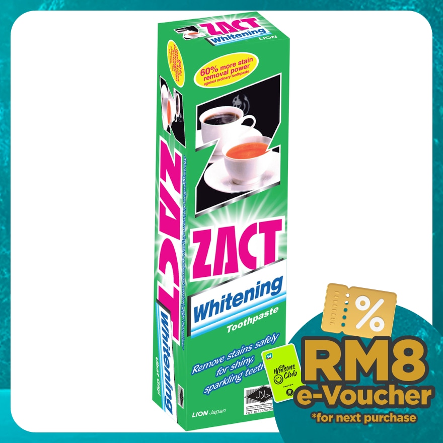Zact Toothpaste offers 60% more stain removal power than ordinary toothpastes to whiten your teeth effectively. It contains CAC & AOX Double Stain Removal Formula that removes tough stains such as coffee, tea and tobacco and with fluoride to help fight cavities and prevent plaque build-up.